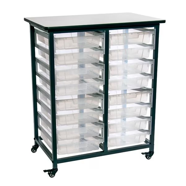 Mobile Bin Storage Unit, Double Row with Small Clear Bins