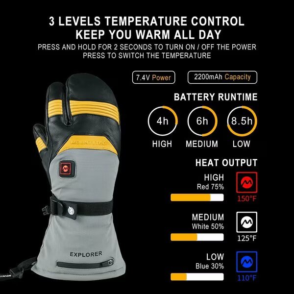 Mount Tec Performance Heated 3 Finger Gloves Explorer 5, Mount Tec, Mfr#: MT61574