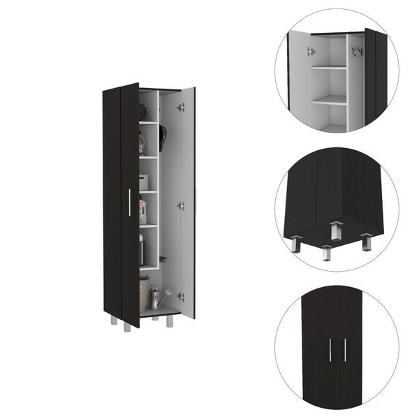Nala Cleaning Cabinet, Double Door, Four Legs, Five Shelves, Black/White, Tuhome, Mfr#: MWB7675