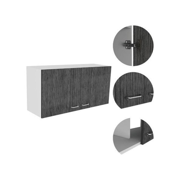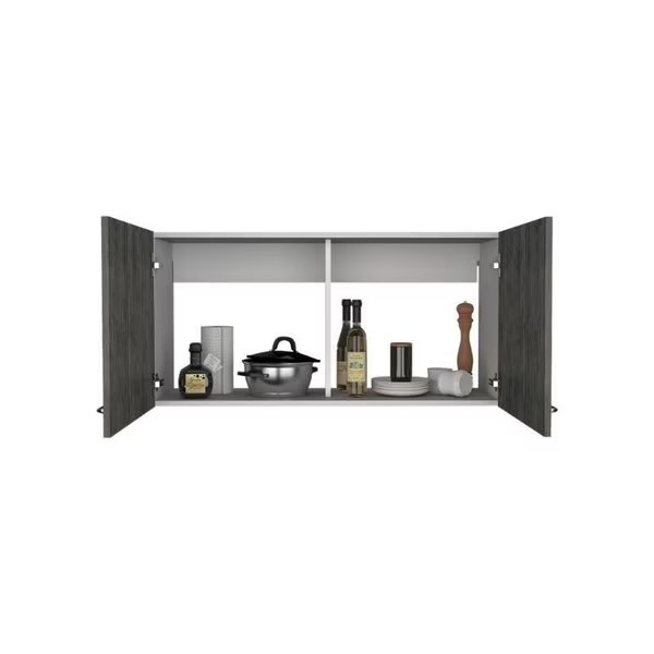 The Tuhome Napoles Wall Cabinet comes with two large cabinet doors in a beautiful volcano finish that combines great with the white finish frame. Inside you will find a large spacious area 39.3 In W x 19.3 H perfect for storing dishes, spices or anything else. The two-tone finish makes any kitchen stand out in gorgeous modern styling. Complete the Napoles look with matching Napoles Base Cabinet with Sink. You can also use it in your office, garage or bathroom. .