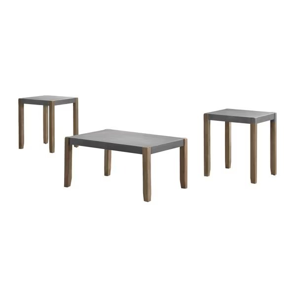 Newport 3-Piece Faux Concrete and Wood 36"L Coffee Table with Two 21" Square End Tables, Alaterre Furniture, Mfr#: ANNP0111371