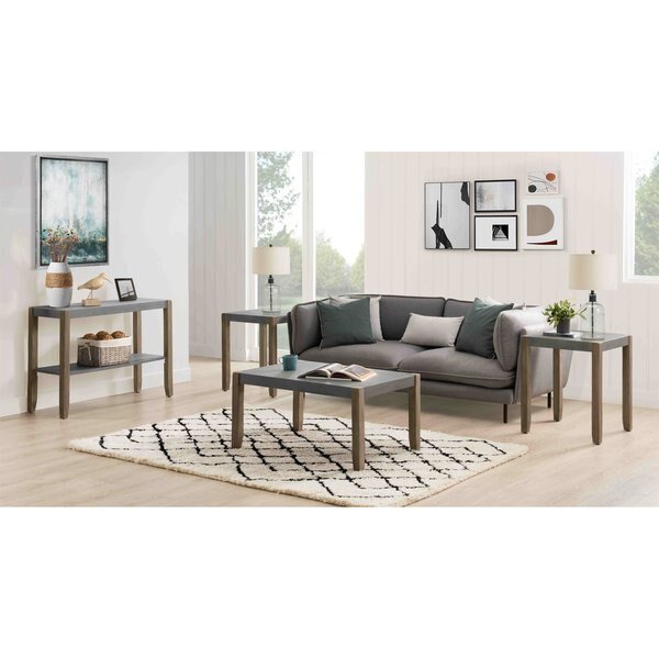 Clean lines and mixed materials are hallmarks of this rustic industrial furniture collection. Set of four tables has your family room style perfected; two end tables, one coffee table and a console/tv stand to finish the look. The faux concrete with the square wood legs blend seamlessly. This collection allows you to affordably update your spaces to a very stylish look. Mix and match to achieve your desired look.
