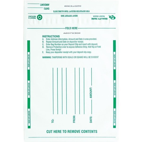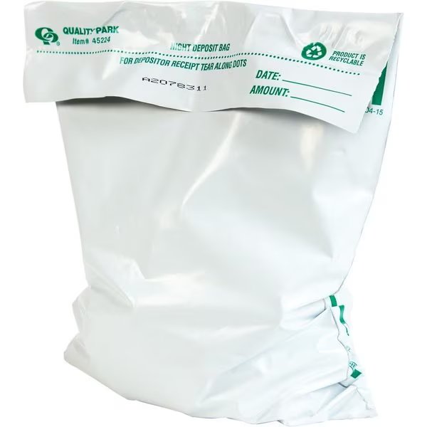 Night Deposit Bag, Poly, 8-1/2"x10-1/2", 100/PK, White PK, Quality Park, Mfr#: QUA45224