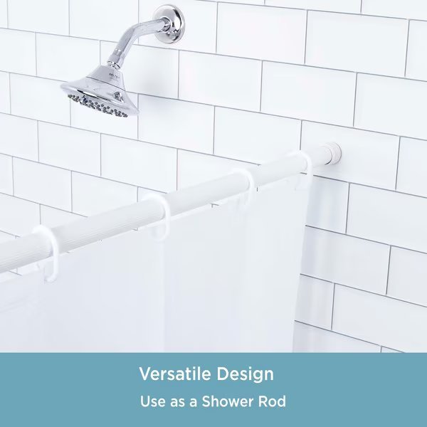 - Use it as a shower curtain rod in standard and oversized bathtubs, or for added storage in closet or laundry rooms