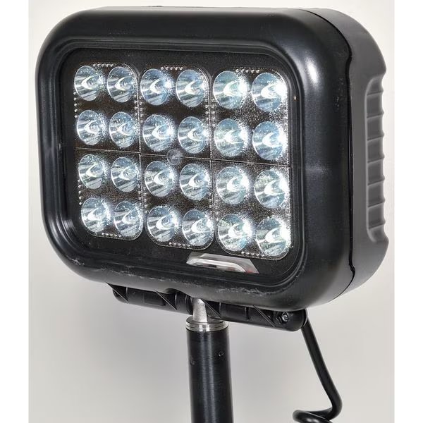 Remote Area Lighting System, Power Source Battery, Battery Chemistry Lead Acid, Maximum Run Time 15 hr, Maximum Brightness 2,000 lm, Number of Brightness Levels 2, Power Cord Length 14 in, Operating Voltage 12V DC, Lighting Technology LED, Number of Lamp Heads 1, Mount Type Floor Stand, Frame Color Black, Hazardous Location Specification Not Rated, IP Rating IP54, Maximum Height Adjustment 32.3 in, Beam Angle 10 Degrees , Color Rendering Index Not Applicable, Includes Bulb Yes