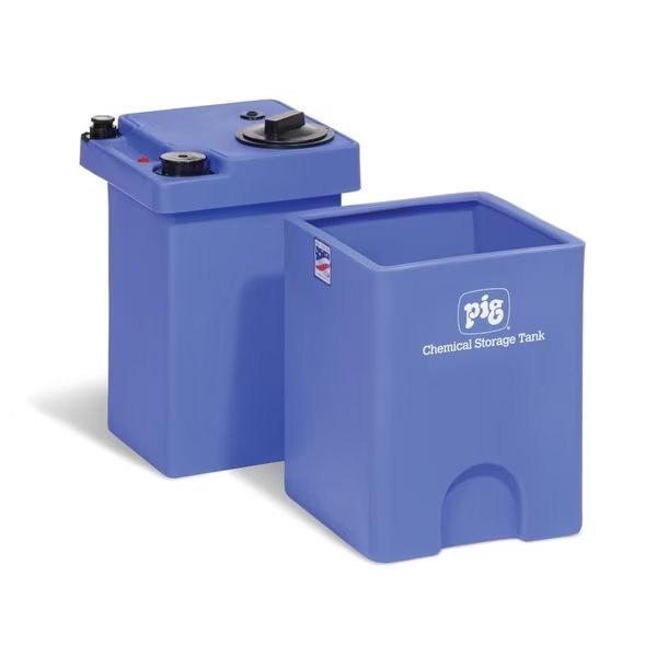 PIG Double-Wall Square Chemical Storage Tank Blue 14" L x 14" W x 22" H, Pig, Mfr#: PAK5201-BL