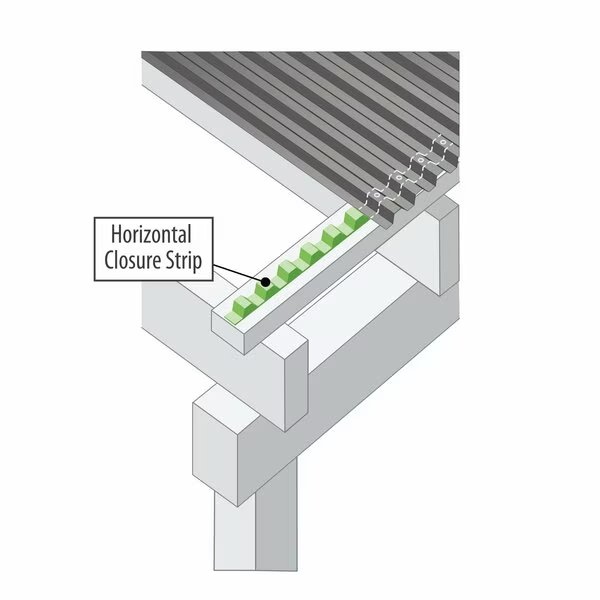Providing support for a finished roof, the Suntuf 24 in. Horizontal Plastic Closure Strips 60 total. They are applied under corrugated roofing panels. They attach under the framing of the roof.