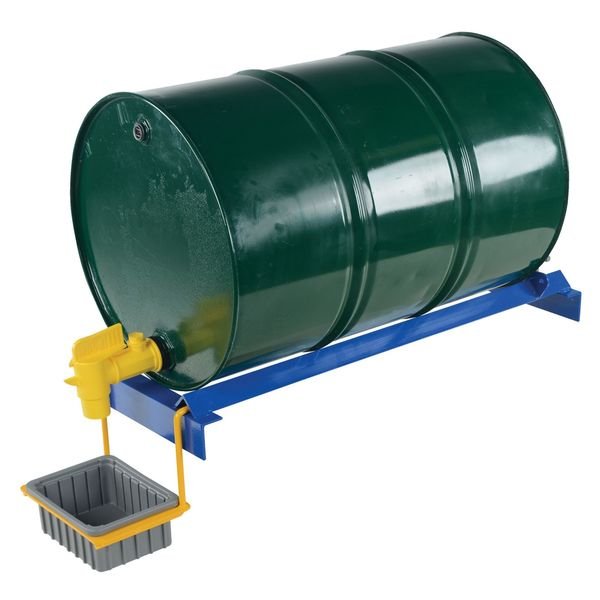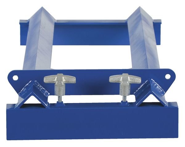 Pallet Rack Drum Cradle, For Drum Capacity 30 gal, 55 gal, For Maximum Drum Diameter 23 in, Housing Color Blue, Overall Depth 43 in, Overall Height 6 in, Overall Width 16 in, Weight Capacity 800 lb, Assembly Fully Assembled, Drum Orientation Horizontal, Features Adjustable Angle Bolts Tilt Drum into Desired Position, Unique Design Converts Standard Pallet Rack into a Horizontal Drum Cradle, Universal Design Work with Box or Step Beams, For Container Type Drums, For Drum Material Metal