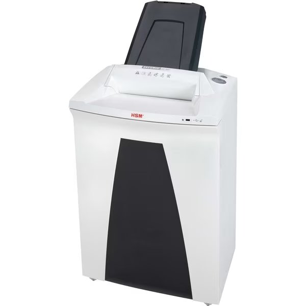 Paper Shredder, Shreds Credit Cards, Paper, Paper Clips, Staples, Cut Style Micro-Cut, Max. Shredding Capacity 500 Sheets, Shred Size 1/16 in x 9/16 in, Shredding Speed 13 fpm, Wastebasket Capacity 21.7 gal, Classification Large Office, Security Level 4, Duty Continuous, Voltage 115V AC, Single Phase, Amperage Draw 4.9 A, Throat Width 10 in, Color White, Depth 19 21/64 in, Height 39 29/64 in, Width 19 9/16 in, Standards UL Listed