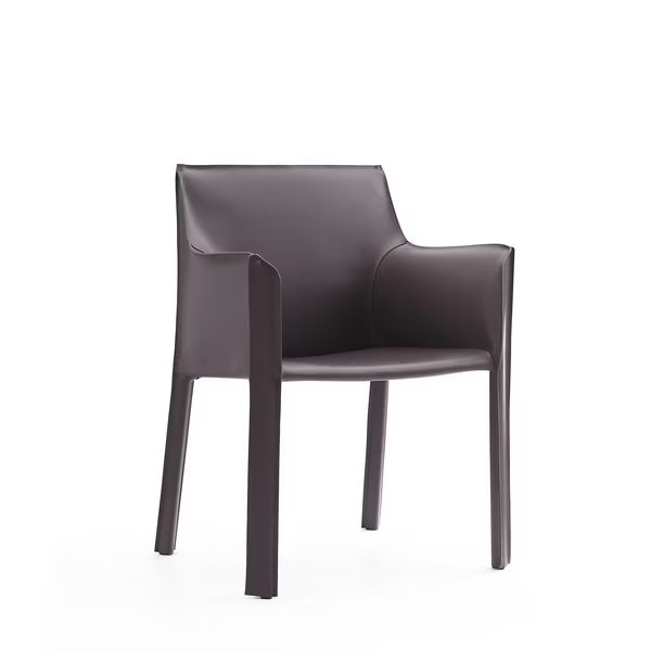 An elegant twist to a classic design. The Paris Upholstered Dining Chair is a welcoming modern set with a curved shape that makes it particularly comfortable. The chair is entirely covered in leather, offering a sleek well tailored appeal. Cleverly constructed to fit any home's decor from industrial and coastal, to glam and boho chic.