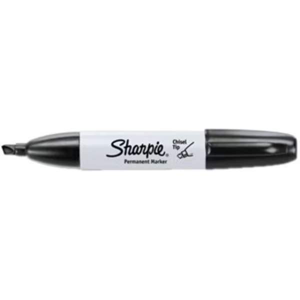Permanent Marker, Black, Marker Tip Chisel, Marker Cap Capped, Barrel Type Wide, Washable No, Waterproof Yes, Standards AP Certified Nontoxic, Markers Brand SHARPIE, Package Quantity 12