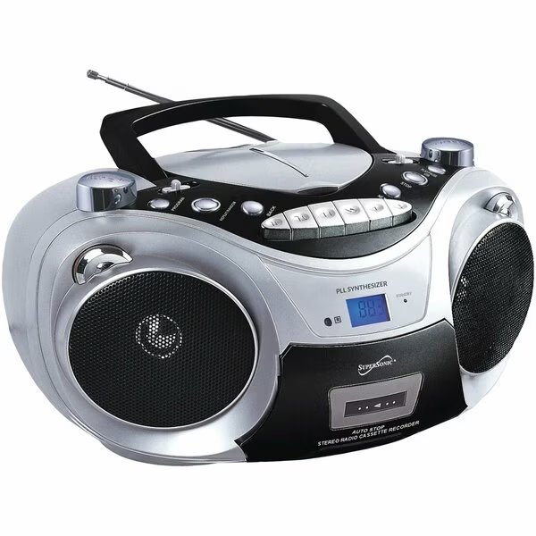 Carry your favorite music wherever you go with the Silver Supersonic Portable Bluetooth Audio System. In addition to its MP3/CD player' it also comes with cassette and AM/FM capability. Now you can skip to your favorite track' set a CD to random or just enjoy some good old-fashioned radio time whenever you want! You can also play music through USB!