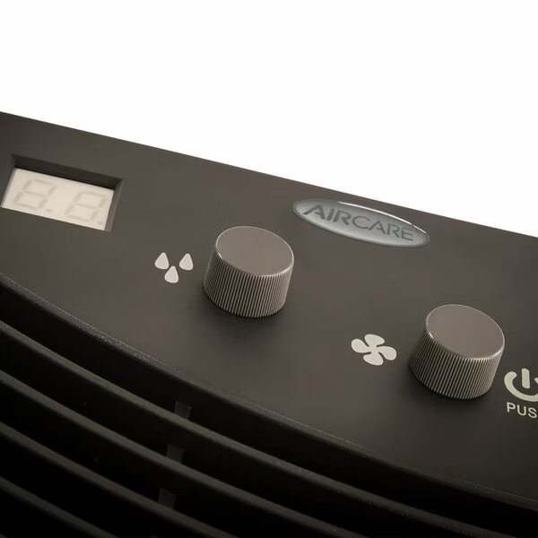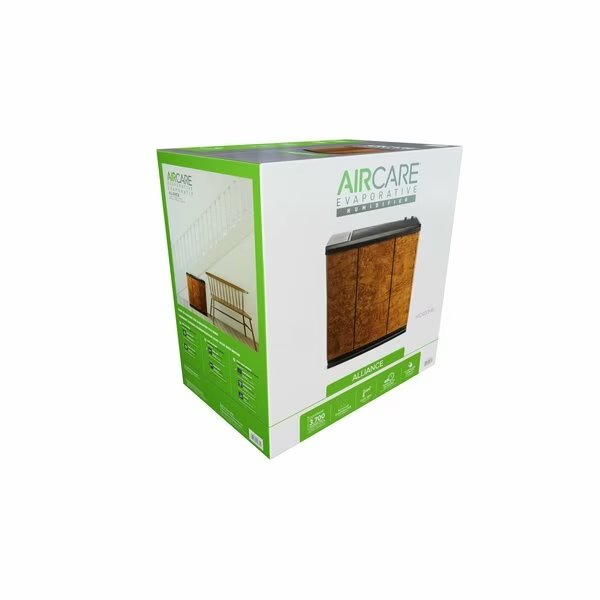 Portable Humidifier, Console, Max. Square Foot Capacity 3,700, Voltage 120 V AC, 2.2 A Amps AC, 80 Watts, Height 23 1/2 in, Width 21 3/4 in, Depth 13 3/4 in, Max. Runtime 45 hr, 5.4 gal Water Reservoir, Drain Type Bottle, Number of Speeds 4, Replacement Wick 2PYG6/AIRCARE MFG.#1045, Wick Treated With Antimicrobial, Cord Length 60 in, NEMA Plug Configuration 1-15P, Color Oak Burl