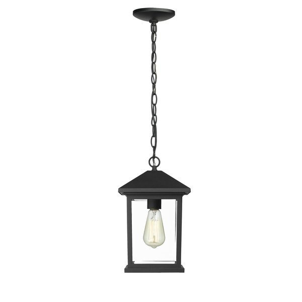Portland 1 Light Outdoor Chain Light, Black & Clear Beveled, Z-Lite, Mfr#: 531CHM-BK