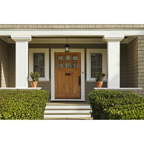 The timeless, mission styling of the Portland family displays clean lines to suit both contemporary and traditional decors. Clear beveled glass paired with black comprised of cast aluminum which withstands nature’s seasonal elements.