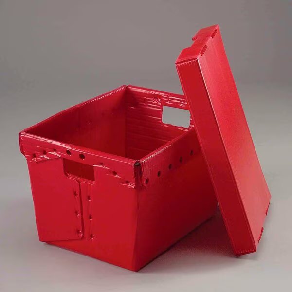 Lightweight, yet tough, this corrugated plastic tote is steel band reinforced at the top for added strength and rigidity. Easy to clean, resistant to dirt, moisture and grease. Convenient hand holes for easy carrying. Nests for space saving storage. Meets US Postal Service requirements.