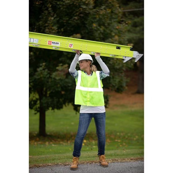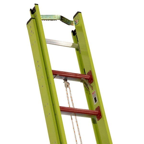 Bauer builds Professional Grade. Our 392 series cable hook combo NexGen FG extension ladder comes with a OHSA/ANSI compliant 375lb Type 1AA Rating. The 2nd generation of Bauer’s light-weight technology is the perfect balance of light-weight & durability. The high-viz yellow is perfect for working in high traffic areas. Our welded rung to plate connection provides a lighter, stronger connection compared to traditional ladders. All of our extension ladders come standard with a 3/8" white cotton blend rope, double rung aluminum die cast locks and our bullseye center weight locator.