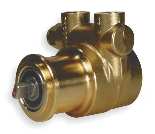 Rotary Vane Pump, Flow Rate - Maximum 140 gph, Feet of Head - Maximum 6 ft of head, Mounting Type Carbonator Clamp, Compatible Motor Frame 48Y NEMA, Media Intake Connection Size 3/8 in, Media Intake Connection Type FNPT, Discharge Connection Size 3/8 in, Discharge Connection Type NPT, Vane Material Carbon, Includes Filter No, Filter Rating - Maximum Not Applicable, For Media Type No, NSF 169 Listed Yes, Operating Pressure - Maximum 150 psi, Operating Temperature - Minimum -4 Degrees F