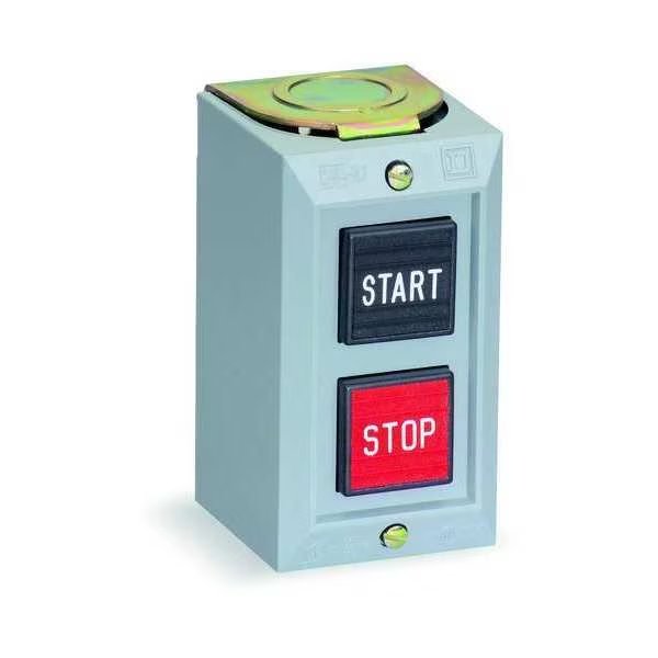 Control Station, Number of Operators 2, Number of Pilot Lights 0, Size 30 mm, Legend Start/Stop, Type of Operator Push Button/Push Button, Action Momentary/Momentary, Operator Color Black, Red, Contact Form 1NO/1NC, Mechanical Interlock No, NEMA Rating 1, Contact Rating 5A @ 600V AC/24V DC, IP Rating IP20, Mounting Wall, Hub 1/2 in to 3/4 in NPT, Height 3.69 in, Width 2.06 in, Depth 2.34 in, Enclosure Material Plastic, Enclosure Color Gray