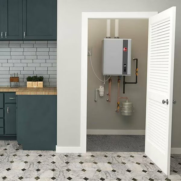 Rheem's RTGH-90DVLP-3 Super High Efficiency indoor condensing liquid propane tankless gas water heater delivers continuous hot water with minimal wait, saving time, energy and water. The RTGH-90DVLP-3 features exclusive Hot Start Programming which keeps the water heater in a ready state eliminating cold water bursts with back-to-back uses. Rheem's exclusive Overheat Film Wrap provides heat exchanger overheat protection and peace of mind while you enjoy efficient, continuous, no wait hot water in your entire home. The compact size, wall mount and industry leading installation clearance allows for installation in small spaces, saving valuable floor space.