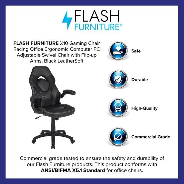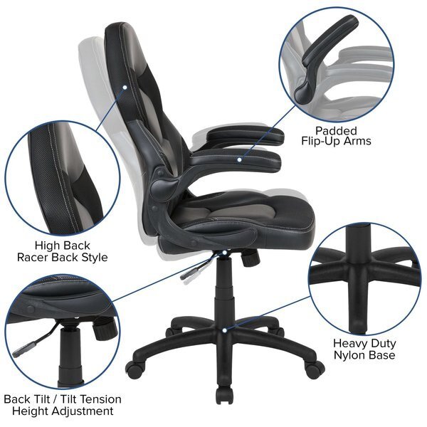 Gaming Chair, Padded Flip-up, Black, Flash Furniture, Mfr#: CH-00095-BK-GG