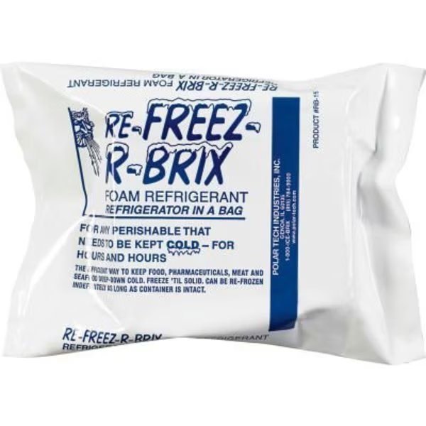 Re-Freez-R-Brix„¢ Cold Bricks, 15 Oz., 4-1/2"L x 4"W x 1-1/2"H, White/Blue, 24/Pack, The Packaging Wholesalers, Mfr#: RB15