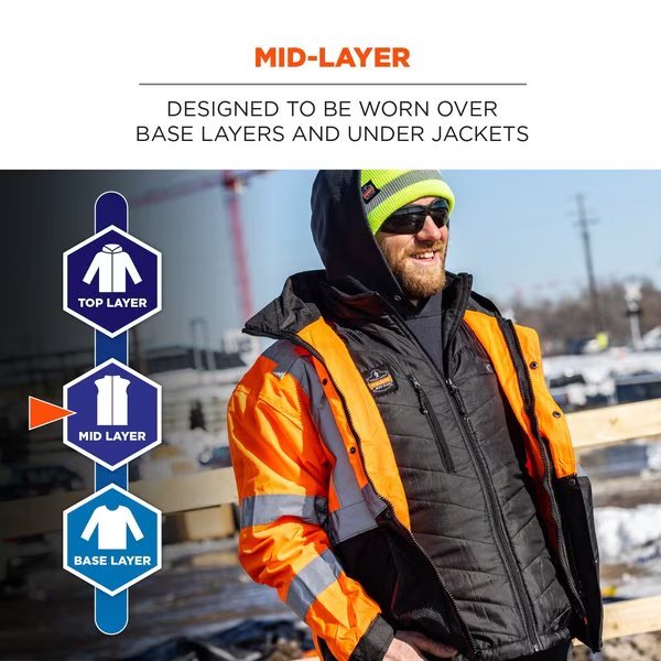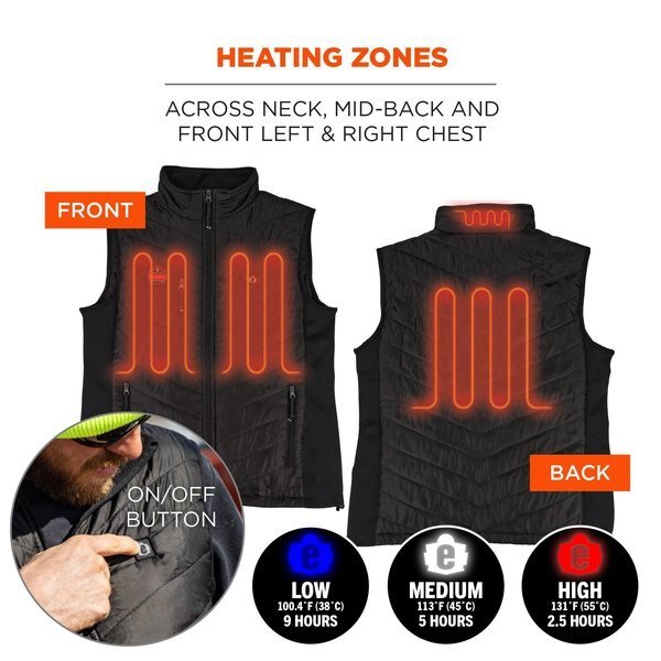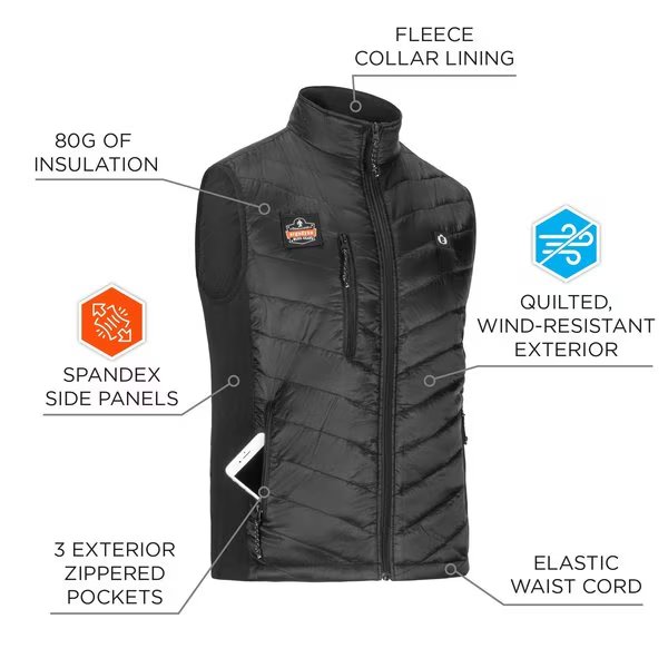 Rechargeable Heated Vest with Battery, Black, Size 3XL, Ergodyne, Mfr#: 6495