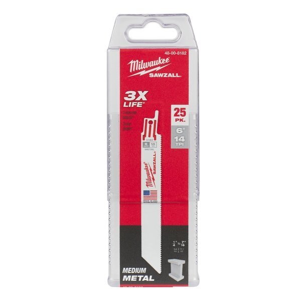 6 in 14 TPI SAWZALL Blades, 25 Pack, Milwaukee Tool, Mfr#: 48-00-8182