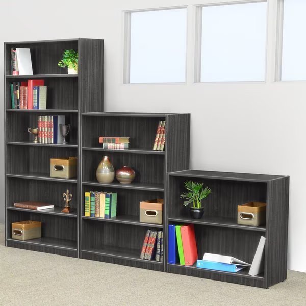 | Features | Tall Legacy bookcase is great for offices, libraries, living rooms, entryways and more.. Five adjustable shelves that can be moved in 1-inch increments. Adjustable glides on the bottom of the base keep the shelves level. Stylish Ash Grey laminate is scratch, stain and scald resistant. Backed by a 10-year limited manufacturer's warranty |