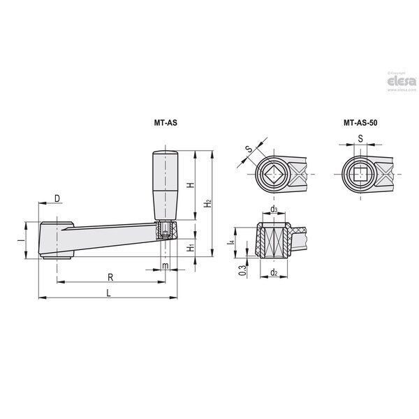 Revolving handle, boss with square hole, MT.80 AS-10x10, Elesa, Mfr#: MT-AS