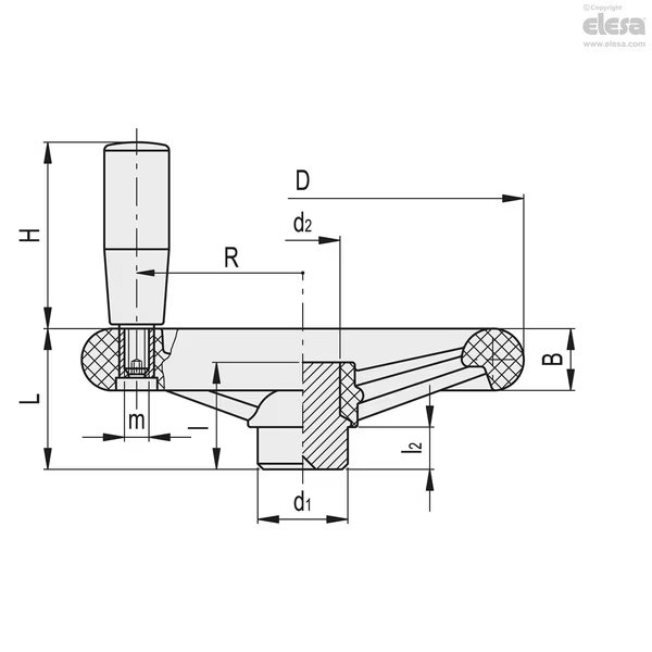 Revolving handle, solid hub, VR.160 FP+I, Elesa, Mfr#: VR.FP+I