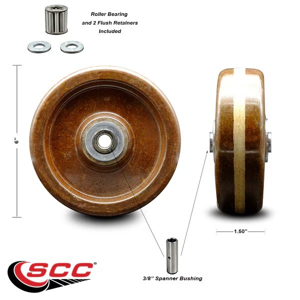 SCC - 6" High Temp Phenolic Wheel w/Roller Bearing - 3/8" Bore -600 lbs Capacity, Service Caster, Mfr#: SCC-PHRHT615-38