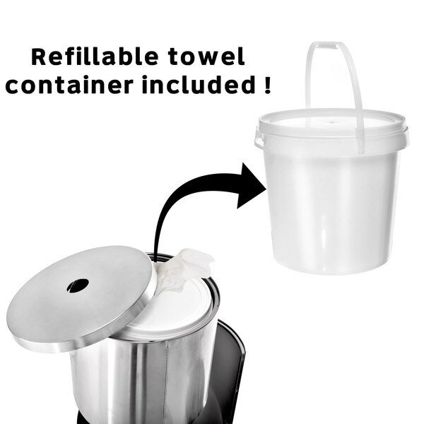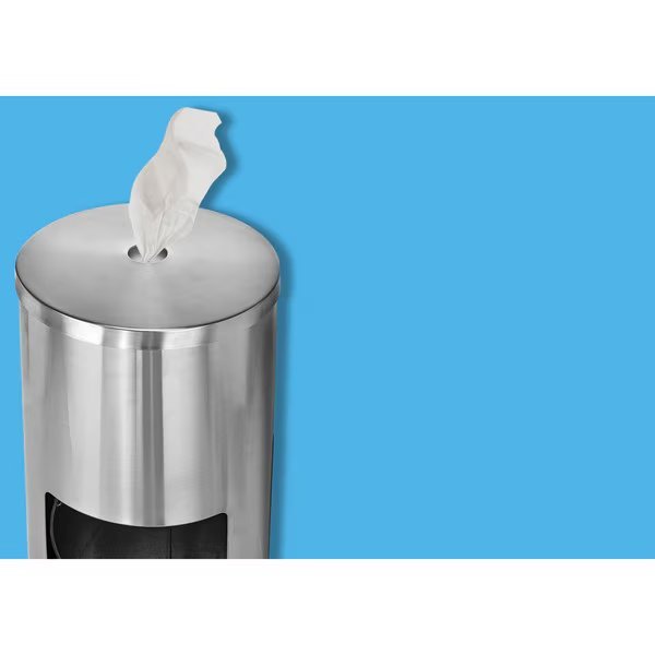 The Alpine Industries Stainless Steel Gym Disinfecting Wipes Dispenser with Built-in Trash Can and Backdoor access, making this a great and unique addition to keeping your facilities clean and waste free. The compact design of the GYM Wipe Dispenser has a large base for added stability. The easy access door allows you to empty waste receptacle and with an improved nozzle allows for hassle free wipe dispensing. This Stainless Steel Gym Disinfecting Wipes Dispenser with Built-in Trash Can will hold most standard gym wipes.