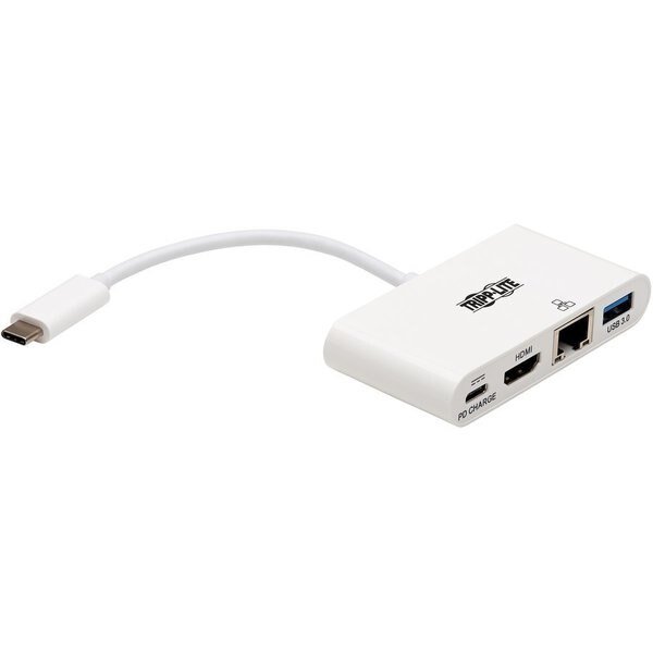 USB 3.1, generation 1 USB-C to HDMI 4K adapter expands the potential of your tablet, laptop, Chromebook, MacBook, smartphone or PC's USB-C or Thunderbolt 3 port. Plug-and-play technology makes installation quick and simple - with no software or drivers to install. Fumble-free, reversible USB-C plug connects in either direction for a quick connection every time. To send digital audio and HD video to an HDMI TV, projector or monitor, connect the HDMI port to the display using an HDMI cable (sold separately). The HDMI port supports UHD video resolutions up to 3840 x 2160 (4K x 2K) at 30 Hz. Adapter is perfect for transmitting digital audio and 4K video to a large display, adding a thumb drive or other USB peripheral, powering and charging a PD Charging-compliant mobile device, and connecting to a Gigabit Ethernet network all at the same time.