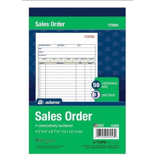 Sales Order Books, 3Pt, 5-9/16" x 8-7/16", Adams Business Forms, Mfr#: TC5805