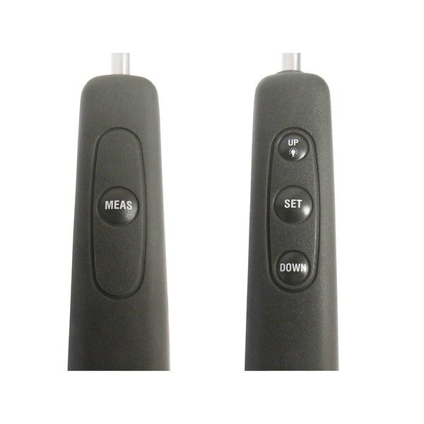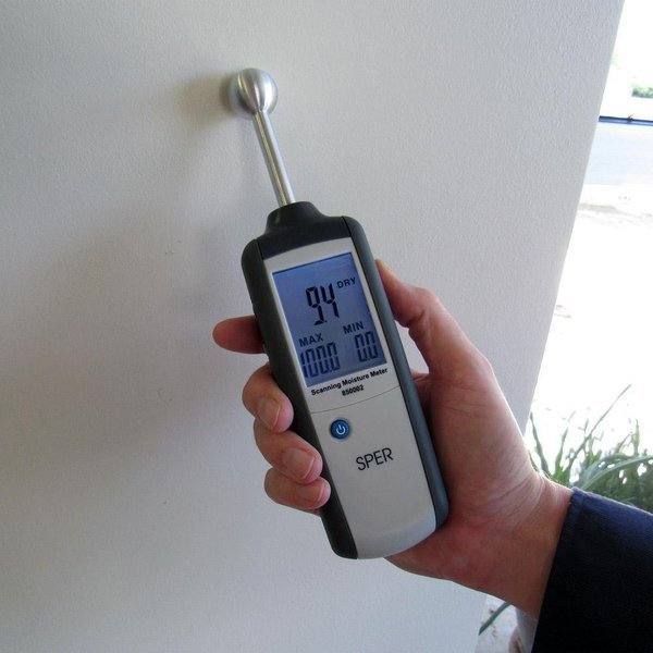 Accurately reads elevated moisture content using cutting-edge electromagnetic wave technology that penetrates 11⁄2; through most materials. Non-destructive design leaves no marks and automatically calibrates to dry air. The probe can be held at any angle and reads 0 to 100% moisture in wood and drywall for building inspection, lumber, water damage repair, and other industries. The large LCD simultaneously displays current, maximum and minimum moisture content, has a bright backlight and a low battery indicator. Features adjustable audible and visible, Hi/Lo wetness risk alarm, auto-power-off and a hold function. Comes ready to use with clear instructions and 3 AAA batteries. Dimensions: 9.5 x 2.5 x 1 235 x 63 x 30mm Weight: 8 oz 226g Specifications Materials Resolution Accuracy Moisture Content All soft and hard woods including but not limited to Pine, Poplar, Oak, Maple, and Teak. 0.1% ±2% All forms of drywall and sheetrock including cementboard, 1⁄4; and 1⁄2; gypsum drywall, soundboard, and greenboard. NOTE: This meter is not appropriate for testing concrete, brick, mortar, or screed Operating Temperature and Humidity 0 to 40 degrees CAnd less than 85% Relative Humidity Reading Depth Range 40 mm Downloads Instruction Manual Product Brochure Comparison Chart Comparison Chart Videos