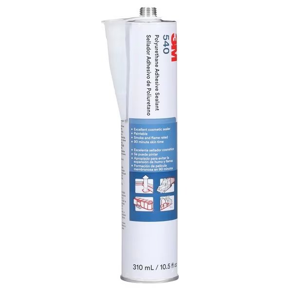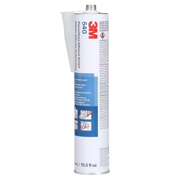 3M Polyurethane Adhesive Sealant 540 is a moisture-curing sealant that forms flexible, weather-resistant bonds. This single-component adhesive bonds dissimilar materials including plastics, sheet molding compound, aluminum, steel, coated metal, and wood in temperatures ranging from 40 F (40 C) to 194 F (90 C). Polyurethane sealants perform well in challenging industrial, transportation, and construction settings by creating durable elastomeric bonds that seal against the elements. High tensile strength, weather-resistance, and low hardness allow 3M Polyurethane Adhesive Sealant 540 to excel in applications such as exterior panel bonding, retail storefronts, and transportation manufacturing.