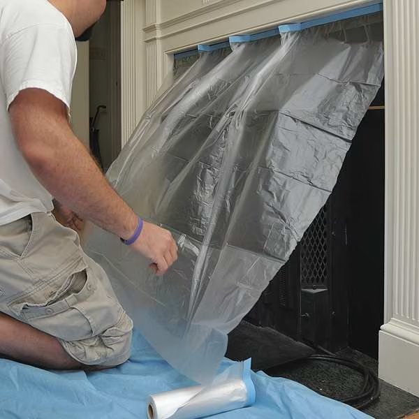 Self-Adhesive Containment Film, Thickness 0.5 mil, Length 72 ft, Width 4 ft, Material Plastic, Color Clear, Fire-Resistant No, Slip-Resistant No, Leak-Resistant No, Adhesive Backing Adhesive Backed, Recyclable No, Application Paint Protection, Backing Construction Film, Compatible Surface Type Walls, Coverage Area 284 sq ft, For Use With All Paints, Includes (6) Pack, Product Form Roll, Product Type Surface Protection Film