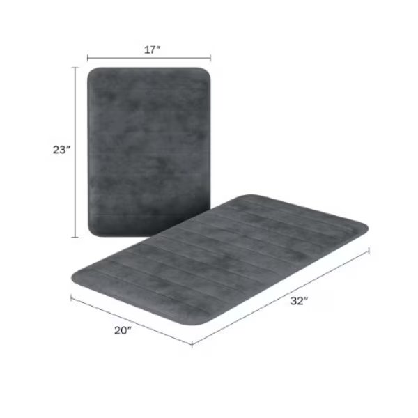 Add comfort and luxury to your bathroom, kitchen or laundry room with the Bathroom Rug Set by Hastings Home. The 1/2-inch thick memory foam provides plenty of soft, cushioned comfort as you step out of your tub or shower. The plush and super soft microfiber topper wicks away moisture and is machine washable for convenient and hassle-free cleaning. The set includes one oversized runner ideal for bathrooms with double vanities, claw foot tubs, or large walk-in showers and one standard size bathmat perfect for pedestal sinks and toilets. They are also great for use in the kitchen or laundry room for comfortable cushioning under your feet. The backside of these rectangular shaped rugs is nonskid, keeping it safely in place as you dry off. The attractive striped pattern is sure to bring a cozy style to any room of your home.