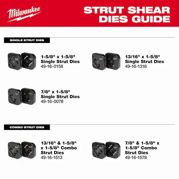 Shearing Dies, Compatible Tool Brand Milwaukee, Die Shape Shearing Die, For Strut Height 13/16 in, For Strut Width 1 5/8 in