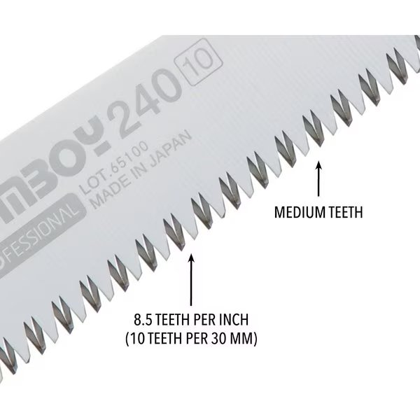 240mm folding saw, 8.5-in blade 19.88-in overall length, 8.5 teeth per inch, .80 lbs