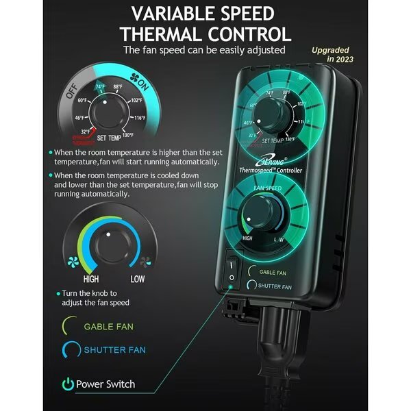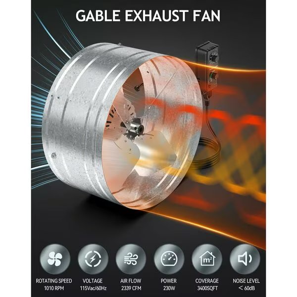 - •BUILD TO LAST - Industrial grade galvanized steel housing, reliable direct drive motor, Variable speed, UL certified, Noise Level < 60dB