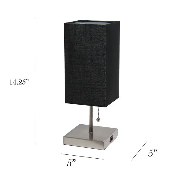 Simple yet fun, this fashionable table lamp features a brushed nickel base and a fabric shade. It comes equipped with a USB seated in the base for use to charge mobile phones, handheld games, tablets, and other small electronics. This lamp will add a fabulous flair to any room. Perfect for bedrooms, kids and teens, college dorms, nurseries, or fun offices!