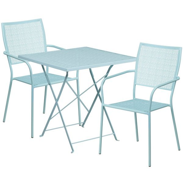 28" Square Sky Blue Steel Folding Table w/2 Chairs, Flash Furniture, Mfr#: CO-28SQF-02CHR2-SKY-GG
