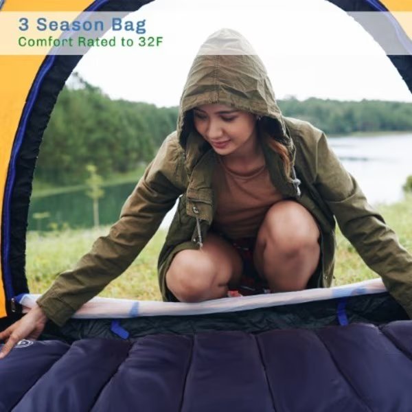 Sleeping Bag, 32F Rated XL 3 Season Envelope Style with Hood for Camping, Hiking, Carry Bag (Navy), Leisure Sports, Mfr#: 478947OOM