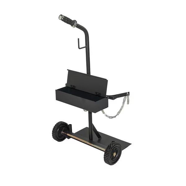 The Metal Man CCSM small cylinder cart is easy to assembleand holds 8" acetylene and 7" oxygen cylinders. This unit comes in two subassemblies for easy shipping in a box and is quickly assembled with 4 nuts and bolts, one axle with two washers, and two cotter pins. This cart features a single handle and 6" wheels that make it easy to maneuv er. The handy storage box has a cover to keep all your tools and supplies out of the weather.