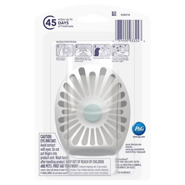 Stuck between a stink and a tight space? No worries! Febreze Small Spaces air fresheners are now longer lasting and prevent odors from lingering for up to 45 days. So theyÆre the perfect all-in-one odor eliminator for all those tiny spots you forget need to be freshened up: WeÆre talkinÆ bathrooms closets the corner where your catÆs litter box lives and more. Just press firmly to activate then set one down wherever you want continuous freshnessà itÆll keep eliminating those small-room stinks for 45 days. With a blend of summer-fresh strawberries raspberries and sweet cream you can enjoy the sweet scent of berry season year-round. Want to keep hitting refresh around your home? Give other scents a try and keep spreading that fresh joy around.