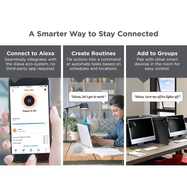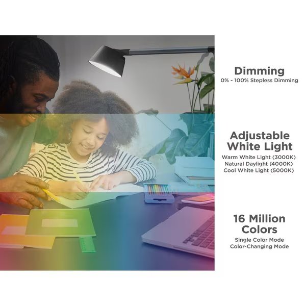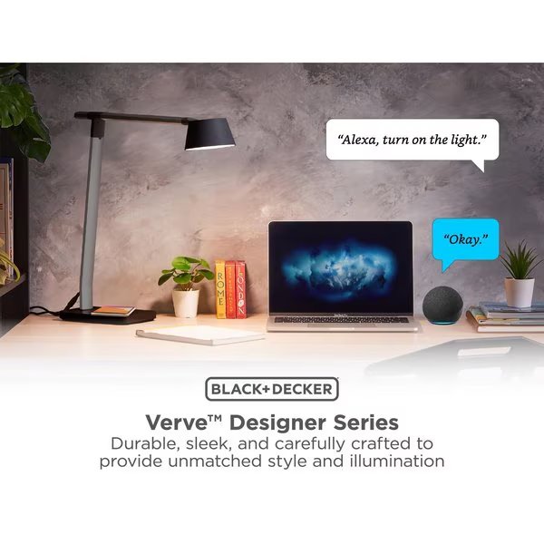 Smart Desk Lamp, Works with Alexa, True White LED + Color Ambiance, Qi Wireless Charger, Black, Black & Decker, Mfr#: LED-QISM2100-BKG-AMZ