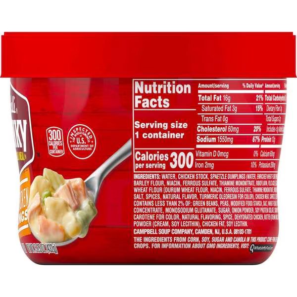 Campbell's Soup Chunky Chicken & Dumplings Microwaveable Soup 15.25 oz. Bowl
