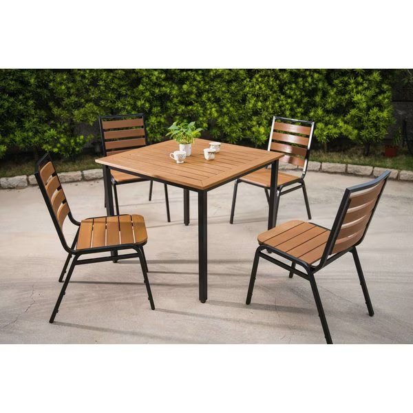 Square Lorell Teak Outdoor Table, 36.6 X 36.6 X 30.75, Faux Wood Top, Lorell, Mfr#: 42684